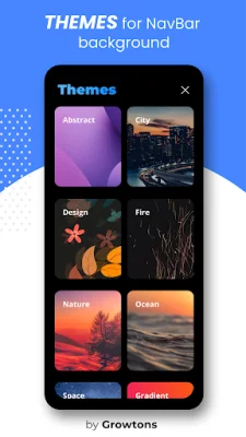 Some key features of this app include the two-in-one navigation bar and feature buttons, the ability to easily show or hide the navigation bar, and new themes and icons to personalize your navigation bar. You can also choose to have a vibration option when clicking on the navigation buttons. Enjoy the app and don't forget to rate it if you like it!
