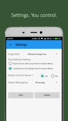 With this app, you can configure your preferred method of communication with your contacts - whether it's click to call or click to select messaging. It seamlessly integrates with WhatsApp, making it even more convenient to stay in touch with your contacts.