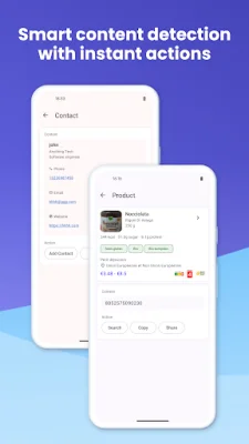 The app also has smart recognition capabilities, which can intelligently detect content types and perform instant actions such as opening web links, downloading files, connecting to WiFi, saving contacts, composing emails and calls, adding calendar events, and more. It also has a download manager with professional features like multi-threaded concurrent downloads, pause and resume, real-time progress monitoring, and support for all file types.