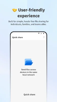One of the key features of Quick Share is its secure local transfer. This means that your data stays protected within the private network, ensuring confidentiality and privacy. The application has a privacy-first design, meaning that it does not track or collect any user data. This is ideal for individuals, families, and teams who value their privacy and want to keep their files secure.