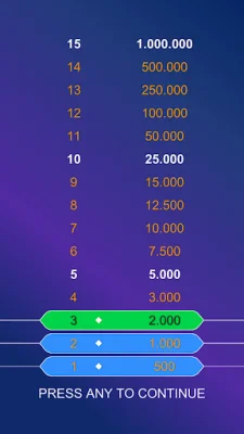 Who Wants To Be A Millionaire? is an exciting quiz game that tests your knowledge on a variety of topics including general knowledge, culture, society, flora and fauna, history, geography, sports, music, and cinema. It offers a fun and engaging way to relax and learn new information. The game is designed with a simple gameplay where questions are presented in increasing difficulty and you have 60 seconds to choose the correct answer from four options. If you answer all 15 questions correctly, you become an instant millionaire in the game. But don't worry if you get stuck, there are two free helps available - 50:50 and phone calls to famous scientists. You can also earn hints by watching ads or winning levels. Additionally, you can ask for outside help by sharing the game with friends and family or on social media. If you choose the wrong answer, you have one last chance to save yourself by watching a short ad or using a hint. Your scores and achievements will be displayed on the screen and on the international leaderboard, where you can compete with other players from around the world. The game offers a vast collection of 20,000 trivia questions and answers in various categories, making it a great source of general knowledge, cultural knowledge, social knowledge, geography, history, sports, entertainment, and more. You can also choose to play in different languages, which can help improve your language skills. If you encounter any issues, you can report them to the developers who will fix them promptly. And if you enjoy the game, you can share it with others so they can also have fun, learn, and explore. So, can you win the Who Wants to Be a Millionaire? Trivia Questions Game? Download the game today and find out!