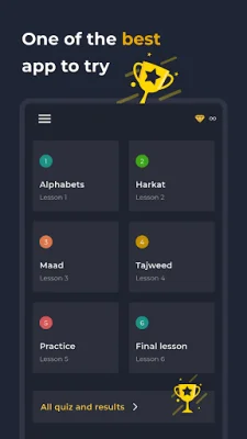 This application offers a variety of audio resources to assist users in improving their pronunciation. Each lesson also includes quizzes to help users advance their skills. This app is an upgraded version of the previous app, "Quran teacher," which has already helped numerous individuals learn how to recite the Quran.