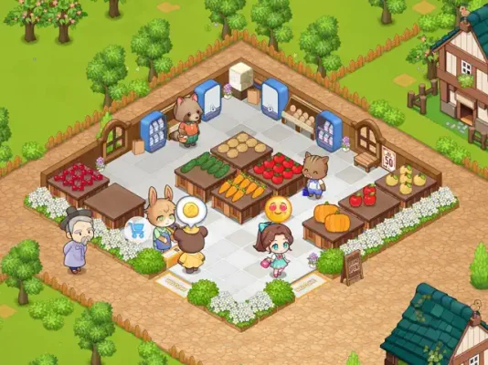 As your farm grows, you can also start producing eggs and milk from your chickens and cows. By investing gold to level up your livestock, you'll be rewarded with premium quality golden eggs and healthy milk. And with the option to sell your goods at the market, you can turn your harvests into profits. Keep an eye out for adorable animal visitors who may stop by your market, and make sure to display your goods attractively to meet their demands.