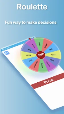 The app also includes a roulette feature, where users can spin the roulette and get a random value. This can be useful for deciding on options or making choices in a fun and unpredictable way. Additionally, the app allows users to create a list of names or values and use the random picker feature to select a random one from the list.