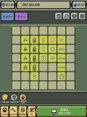 The main features of this game include accumulating insignia to get promoted, collecting all the insignia from Private to General, and battling with the insignia you've collected. You'll also face powerful bosses and various enemies such as tanks, battleships, fighter planes, and even spaceships. Earn gold by defeating enemy tanks and complete achievements to receive rewards. You can also receive airdrop supplies at regular intervals and build your reputation for a better medal.
