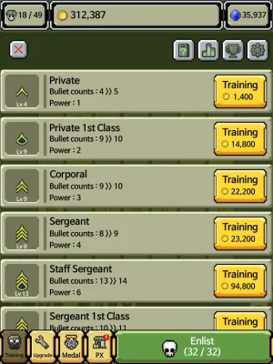 For all military enthusiasts out there, this game is perfect for you! With simple controls and exciting shooting action, you'll have a blast playing this game. Not only that, but you also get to showcase your military badges and earn promotions from Private to General. Train hard and defeat enemy tanks, battleships, and fighter planes to rise through the ranks. Once you start playing, you won't be able to stop. So enlist now and start your journey to raise your rank insignia!