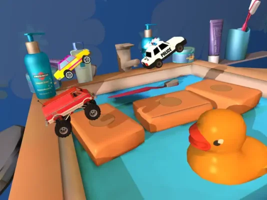 Mini Toy Car Racing is an exciting mobile game that allows players to test their skills by taking control of a powerful RC car and racing against other mini toy cars on various tracks. The game takes place in different household environments such as the kitchen, bedroom, and bathroom, providing a unique and challenging racing experience.