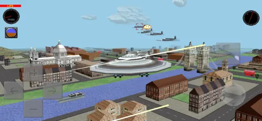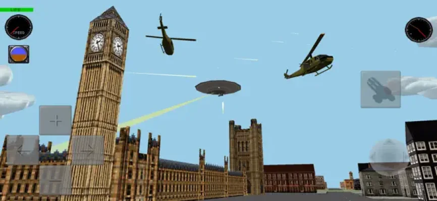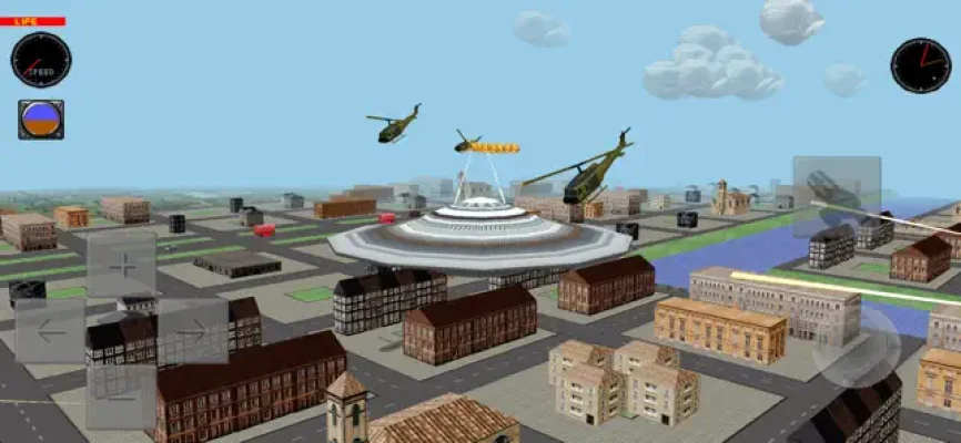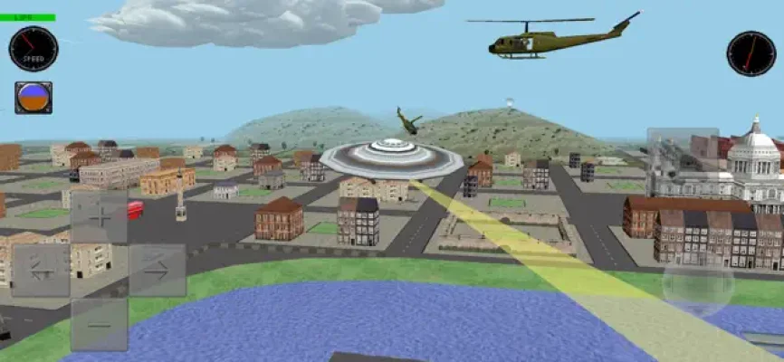 The game offers total freedom of movement around the city, mountains, and rural areas, with several real buildings recreated for players to explore. Additionally, players have the option to customize their UFO by adding a banner and displaying a message of their choice. The graphics are also configurable, ensuring a fast and smooth gameplay experience on all devices.