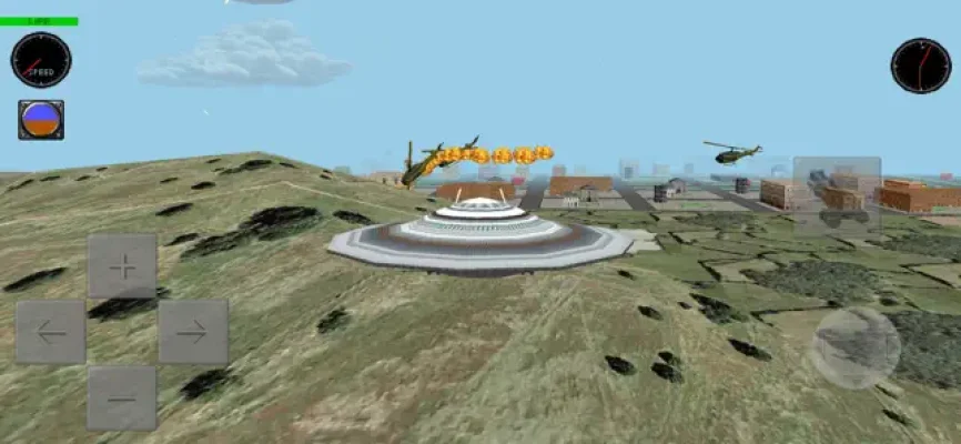 UFO Movement is an exciting and action-packed game that allows players to control a UFO with advanced capabilities. Unlike a plane or helicopter, the UFO has the ability to remain perfectly stationary and accelerate rapidly to reach high speeds. It is equipped with machine guns and smart missiles, making it a powerful force to be reckoned with. Players must use their skills to destroy enemy aircrafts, helicopters, anti-aircraft, ground targets, and moving vehicles, watching them fall in flames as they are destroyed by the UFO's weapons.