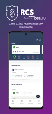 O aplicativo RCS Global é uma ferramenta que permite aos usuários converter reais em cinco diferentes moedas estrangeiras: dólar americano (USD), dólar australiano (AUD), dólar canadense (CAD), euro (EUR) e libra esterlina (GBP). Com apenas alguns toques, é possível realizar a conversão de forma rápida e prática, diretamente pelo aplicativo.