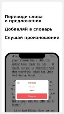 This application is designed to make reading and learning English easy and accessible. With just a few clicks, you can open a book and start reading. If you come across a word you don't know, simply click on it to see its translation. And if you want to understand the meaning of a word in context, you can open the translation of the sentence or even the entire paragraph.