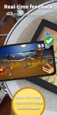 The app is designed for you to learn and have fun anywhere, whether at home or with friends and family. You can also activate real-time feedback and play with a real drum or use body percussion. The app's level progression is educational and was developed by professionals, making it a trusted resource for learning rhythm.