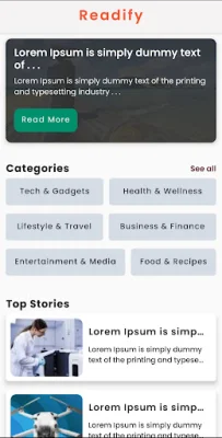 With its sleek and modern design, Readify enhances the overall reading experience. The app's aesthetics complement its functionality, creating an environment where content is not only informative but also visually engaging. But Readify is more than just a blog app; it's your gateway to staying informed and inspired effortlessly. Whether you're an avid reader, someone seeking personal growth, or simply love discovering new ideas, Readify caters to your diverse needs, making engaging content a seamless and enjoyable part of your daily routine.
