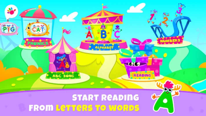 This application offers a variety of educational games for children that are organized by different themes. The first game, SuperAlphabet, focuses on helping children learn the sounds and letters of the alphabet through fun activities like bubbles, painting, and hide and seek. There are over 100 levels of games to help children learn to read and recognize letters.
