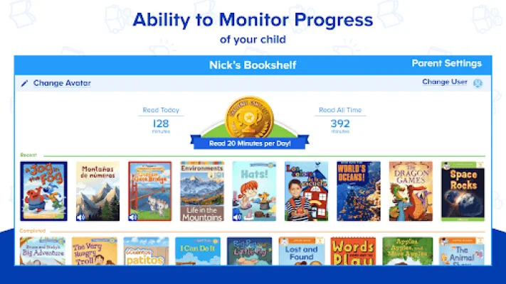 According to reading experts, children who read more than 10 pages per day score 10% higher in reading proficiency. Additionally, reading for just 10 minutes per day can increase a child's vocabulary by more than half a million words in a year. With ReadingIQ, children can unlock a learning adventure and have access to unlimited leveled books for learning.