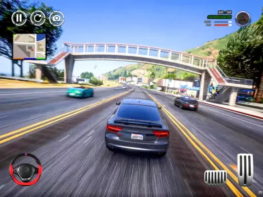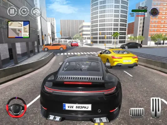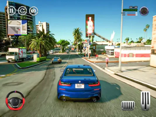 This application is a driving game that takes place in a big city environment. Players have the option to choose from multiple cars to drive around the city. The game boasts realistic engine sounds and car controls, making the driving experience feel authentic. The graphics are also designed to be attractive and visually appealing. In addition, the game features smooth background sounds to enhance the overall experience.