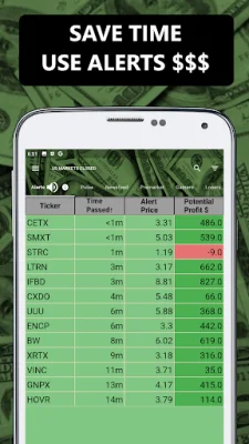 The Alerts - Trade Ideas application is a free, real-time stock screener app for Android devices. It provides users with live stock news feed from the US market, including premarket (4.05am-9.30am), gainers and losers (9.00am-4pm), unusual volume (starting at 9.45am), and afterhours (4.15pm-8pm) trading. Additionally, the app offers a low float stock list, which includes stocks with a float of less than 5 million shares, and a parameter for being on the list, which requires a day volume of over 1,000 shares.