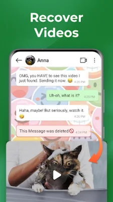 The app's key features include the ability to retrieve deleted text messages instantly by scanning your notifications, securely backup your chats without needing a cloud service, and easily resend or share messages with any contact. It also offers the option to recover deleted documents, photos, videos, GIFs, stickers, audio, and voice messages. And with a built-in player, you can view and listen to your recovered media within the app.