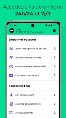 Si vous êtes client RED Box, l'application vous permet également de gérer votre abonnement et de suivre l'état de votre ligne en cas de panne ou d'incident. Vous pouvez également modifier votre rendez-vous avec un technicien ou suivre l'avancement de votre commande.