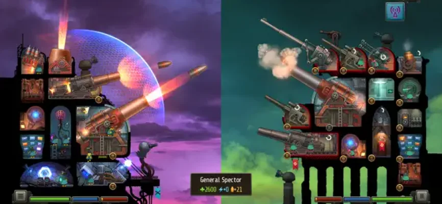 As the commander, you have the ability to customize and manage your battle fortress. You can grow and upgrade your arsenal of weapons and utility facilities, and strategically place them in different slots of your fortress layout. The game also features an Active Pause function, allowing you to freeze time and issue multiple orders simultaneously. This allows you to put out fires, repair damaged weapons, and orchestrate coordinated attacks on your opponent.