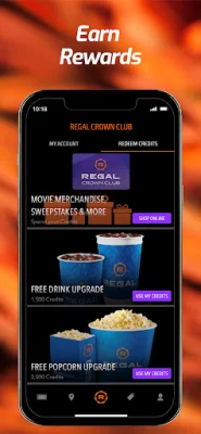 Join the Regal Crown Club for free and start collecting credits with every movie ticket purchase. As a member, you'll also have access to movie deals and discounts on concessions, as well as 10% off all food and non-alcoholic beverages at Regal Cinemas. The Regal mobile app was designed to enhance your moviegoing adventures and make them even more enjoyable.