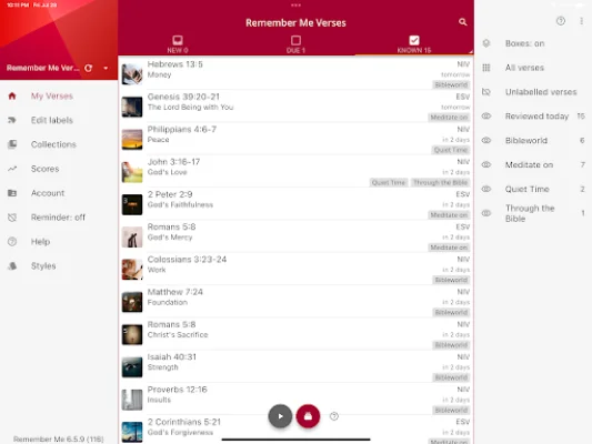 Remember Me is a versatile and user-friendly app that makes Bible memorization accessible and enjoyable for all. It encourages users to apply the basic principles of Scripture memorization to their daily lives and make the most of every opportunity to grow in their faith. With its various features and simple steps, Remember Me is the leading Bible memory app for anyone looking to learn and retain God's Word by heart.