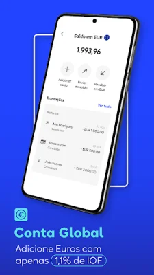 Com a Conta e Cartão Global, você pode enviar, receber e adicionar euros à sua conta, guardar dinheiro para viagens ou outros objetivos e fazer compras em mais de 175 países sem pagar IOF. Isso significa mais praticidade e economia para suas transações internacionais.