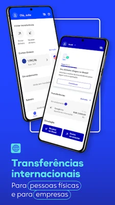 No aplicativo, você pode realizar diversas operações, como transferências internacionais em diferentes moedas, usar o cartão de débito internacional para compras em euro sem IOF, acompanhar suas transações em andamento, receber dinheiro do exterior na conta PF e consultar limites de envio e recebimento de dinheiro.