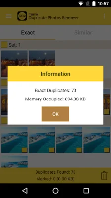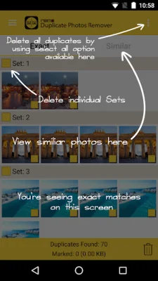 The app displays duplicate or similar photos in sets and gives users the option to delete the entire set or select specific images from it. Even if the entire set is deleted, the app ensures that one copy of the photo is still retained. This feature is especially useful for users who may be hesitant to delete all copies of a photo.