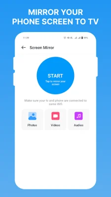 The Screen Mirror feature allows users to mirror their small phone screen onto a larger TV screen. This makes it easy to access various media files such as photos, videos, and music on a bigger screen. Users can also share their screen with friends and family, making it a great tool for group viewing.