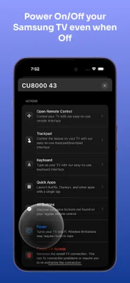 This application is a remote control for Samsung TVs that allows users to easily access and control various streaming apps such as Netflix, YouTube, Disney+, and Twitch with just one tap. It also has the ability to turn the TV on and off, even when it is powered off, for supported Samsung models. The remote control feature allows users to navigate through menus, change channels, adjust volume, and switch input sources using directional keys.