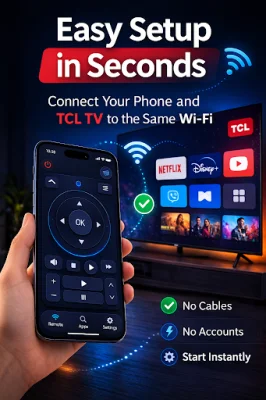 The setup process for this app is quick and effortless. Users simply need to connect their phone and TCL Smart TV to the same Wi-Fi network, open the app, and start controlling their TV instantly. There are no cables, accounts, or complicated configurations required, making it a hassle-free solution.