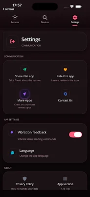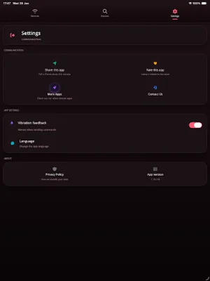 The main features of this app include the ability to control TV functions and media playback, as well as an integrated touchpad for smooth navigation and pointer control (on compatible TVs). It also supports both IR and network-based communication and has a clean, fast, and user-friendly interface.