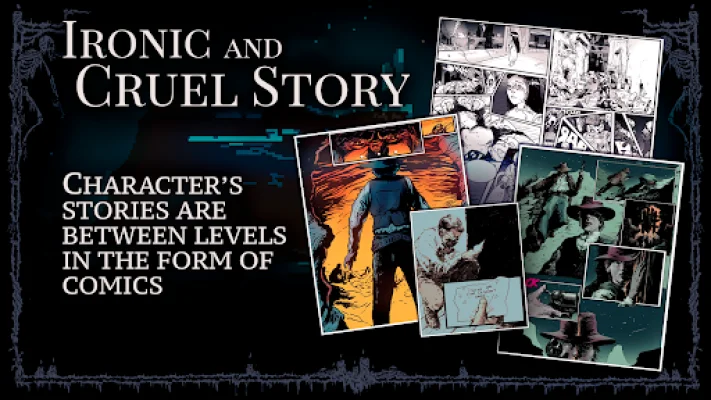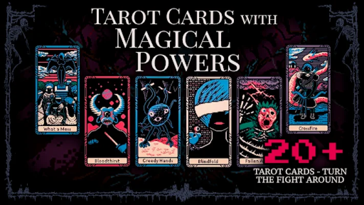 The game features a unique and ironic narrative that reshapes traditional storytelling in video games. Players can choose from a diverse set of heroes, each with their own scars and skills, to withstand the challenges of the game. With the power of tarot cards and books scattered throughout the pixel world, players can evolve and use them for their rebirth.