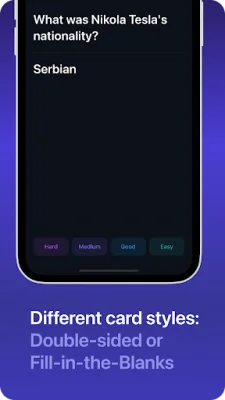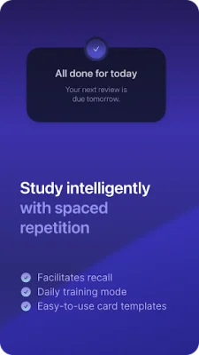 In summary, this flashcard app offers a personalized and efficient way to learn and retain information. With the option to create your own flashcards or have the AI generate them, two different card layouts, and an intelligent spaced repetition algorithm, users can have a well-rounded and effective study experience. Whether you're a student, professional, or simply looking to expand your knowledge, this app is a valuable tool for anyone looking to learn and retain information.