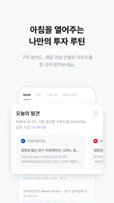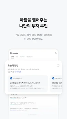 또한, 매일 아침 나만의 투자 루틴을 열어주는 '오늘의 발견' 기능을 제공합니다. 구독하지 않아도 매일 선별된 리포트를 무료로 확인할 수 있습니다.