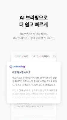 AI 브리핑 기능을 통해 핵심만 담긴 리포트를 쉽고 빠르게 이해할 수 있습니다. 또한, 밤사이 움직인 글로벌 시장의 핵심 이슈를 매일 아침 신속하고 정확하게 전해줌으로써 190여 개국의 뉴스와 데이터를 분석하여 투자 흐름을 이해하는 데 필요한 핵심 인사이트를 제공합니다.