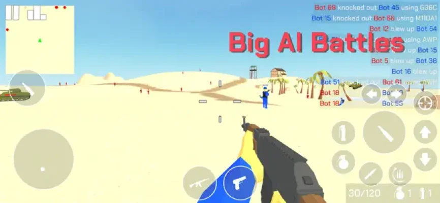 You can experience the thrill of a battlefield simulation with this application, where you can play with up to a hundred computers. The game offers a variety of maps, each with unique features and different types of vehicles such as tanks, machine guns, and airplanes. You can engage in intense matches on small maps or explore the vast desert in a vehicle of your choice.