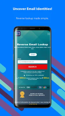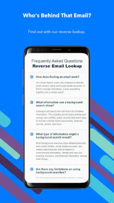 Our Reverse Email Lookup app is a powerful tool that not only helps you identify email owners, but also assists in establishing new business contacts, reconnecting with old friends, or verifying online dates. With a comprehensive report that may include social networking profiles and a wealth of additional background check data, our app paints a vivid picture of the email owner.