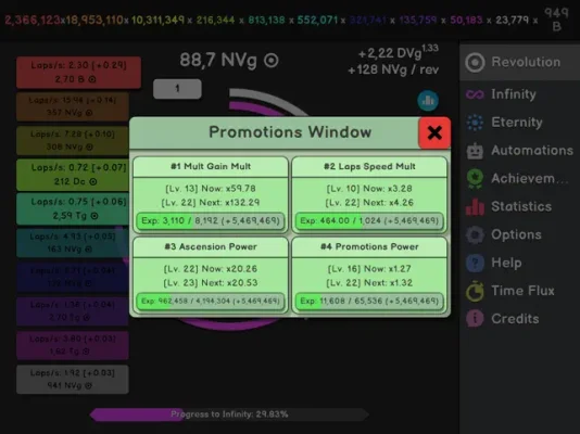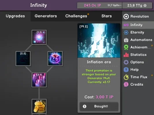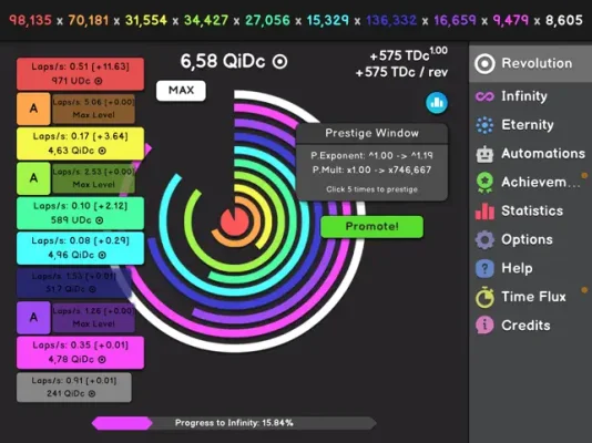 Revolution Idle is an addictive idle game that offers a variety of features to keep players engaged and constantly progressing towards their ultimate goal. With multipliers and prestige, players can boost their progress and unlock even more multipliers and exponent growth. Reaching infinity and eternity will unlock new mechanics and shatter the limits, providing even greater rewards for players.