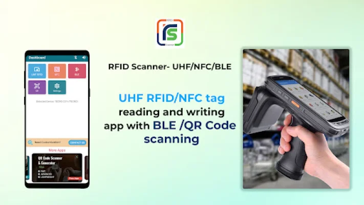 Our application offers a convenient way to read and write NFC cards, as well as create NFC business cards. Additionally, it allows you to scan BLE beacons and discover BLE-enabled devices in your vicinity. The user-friendly dashboard includes features such as SCAN TAG, SCAN BARCODE, WRITE TAG, TAG FINDER, INVENTORY CYCLE, and SETTINGS. With the SCAN TAG feature, you can easily scan all RFID tags in the area using an RFID HANDHELD/ RFID SLED Reader. The SCAN BARCODE feature allows you to scan barcodes on RFID labels, while the WRITE TAG feature lets you encode RFID tags. The TAG FINDER feature helps you locate RFID-tagged objects with accuracy. The app also includes an INVENTORY CYCLE feature for creating and maintaining inventory lists. The SETTINGS option allows you to set up a new RFID Reader device and adjust power and volume for notifications. You can also export files in CSV and Excel sheet formats. Our app supports Zebra Handheld Readers and SLED readers, as well as Chainway Handheld Readers. In addition to RFID technology, our app also supports NFC technology. You can easily read and write NFC tags, NFC business cards, and NFC ID cards. The app allows you to create customized NFC business cards and promotional materials. It also supports various NFC specifications and can read different types of NFC tags and cards. Our app also functions as a BLE Scanner, allowing you to scan all Bluetooth Low Energy devices with just one click. You can locate misplaced devices with great accuracy and scan different types of BLE beacons, such as Eddystone beacons by Google and iBeacons by Apple. Furthermore, our app can also scan QR codes and UPC barcodes, making it a versatile tool for various purposes. You can scan product QR codes, restaurant menus, feedback QR codes, business cards, and more. It also supports different types of 1D/2D barcodes and matrix barcodes. In summary, our application offers a range of features for reading and writing NFC and RFID cards, scanning BLE devices, and scanning QR codes and barcodes. It is user-friendly and supports various devices and technologies, making it a convenient and versatile tool for various applications.