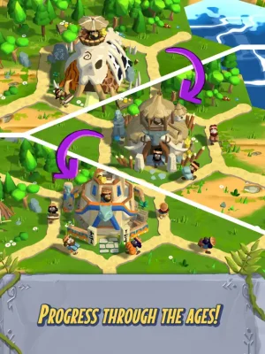 In Idle Town, you will start in the prehistoric era, using basic resources like stone and wood to create essential materials. As you progress, you will strategically process more complex materials like planks, bronze, and iron to propel your tribe towards success. Even in idle mode, your game will continue to progress, allowing you to reap the benefits at all times.