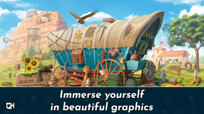 Explore 20 gorgeous locations across the central US as you search for hidden objects and unlock bonus puzzles. Immerse yourself in beautiful graphics and enjoy hours of relaxing hidden object gameplay. And for a finale, test your knowledge of US trivia.