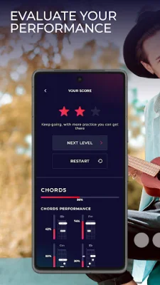 The app focuses on teaching you chords and strumming patterns for both instruments. It provides step-by-step instructions on how to position your fingers on the fretboard and gives instant feedback on the accuracy of your notes. You can also practice strumming along with a backing track and gradually increase the tempo until you can play at the original speed of the song.