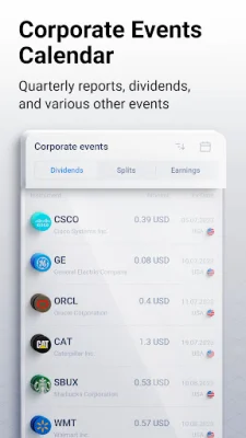 The app allows users to manage multiple portfolios in one place, making it easier to diversify their investments. Users can trade stocks, ETFs, commodities, and metals, and create diversified portfolios within a single account. The app also offers innovative tools such as live stock charts, a corporate actions calendar, and popular trading economic indicators to help users track their finances and invest confidently.