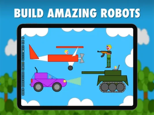 One of the main features of RobotMania is its endless building possibilities. You can build various vehicles such as cars, tanks, airplanes, rockets, and spaceships. You can also craft houses, castles, cities, and even mechanical creatures. With the option to add motors, thrusters, and weapons like cannons or lasers, you can bring your creations to life. The app also allows you to animate your robots using joints, sliders, and buttons, just like real engineering.