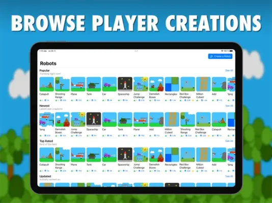 RobotMania also has a strong community aspect, allowing users to discover and play thousands of creations from other players. You can share your robots, vehicles, and games online and receive feedback from other users. The app also features global leaderboards, where you can like, comment, and compete with other players. You can also follow your favorite creators and get inspired every day.