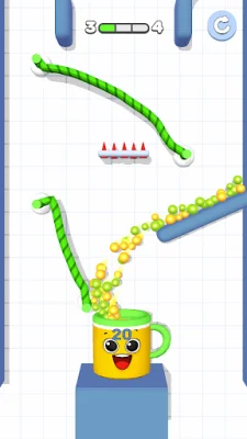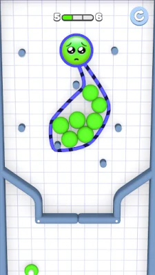 Challenge your logic and spatial awareness with this captivating mobile game. Each level consists of two stages, each with its own unique puzzle. In the first stage, you must draw a rope in the correct shape to bring all the large balls together without getting caught on any obstacles. Once the balls explode into smaller ones, you must use a limited number of rope pieces to guide them through more obstacles and into the cup at the bottom of the board.