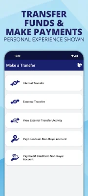 With the app, users can easily manage their accounts by checking balances and transactions on all devices, including wearables. They also have the option to freeze their Royal debit or credit card, transfer funds, make payments, and pay bills using the Pay a Bill/Bill Pay feature. For those with a Royal credit card, they can manage it through the app and even pay other people. Additionally, users can view account statements and cleared checks, as well as stop payment on checks. For business account users, admins have the ability to manage other business users and complete approvals.