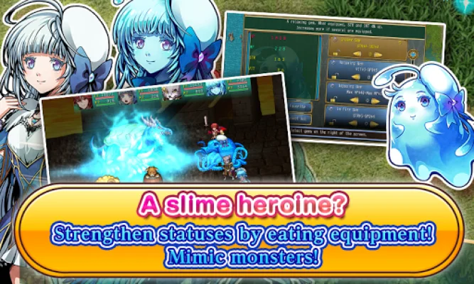 The slime heroine has unique abilities such as strengthening her stats and learning new skills by consuming gems. In battle, she can even mimic monsters with a powerful death-blow skill. Players can also switch between different characters as the leader of the party, each with their own special actions and the ability to find hidden items.